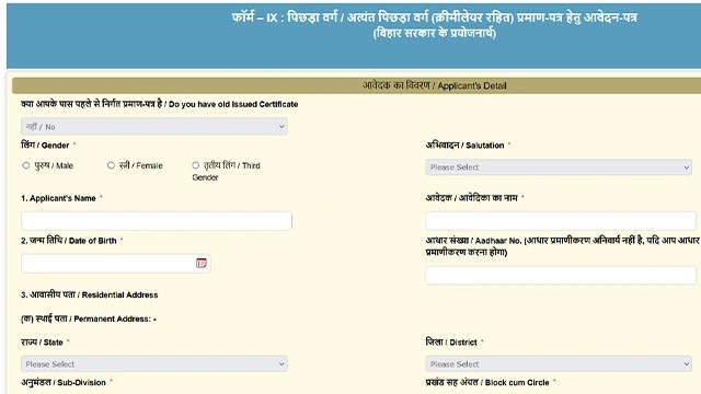 बिहार में नॉन क्रीमी लेयर सर्टिफिकेट कैसे अप्लाई करें?